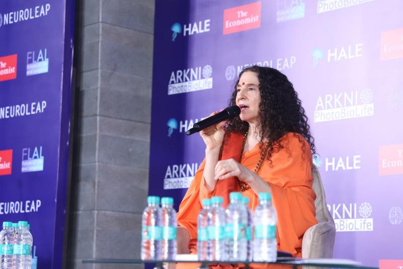 Sadhviji was a keynote speaker at the Chief Learning Officers Summit at the National Stock Exchange in Mumbai. She joined NeuroLeap Founder, Kumaar Bagrodia, for a compelling discussion and beautifully shared about the role of the mind to create and shape our lives. She emphasized the powerful overlap between science and spirituality and explained the role of the conscious and subconscious minds in creating our thoughts, perceptions and our lives! She also provided powerful tools on how we can harness the power of both the subconscious and conscious minds in creating and crafting positive, empowered lives.