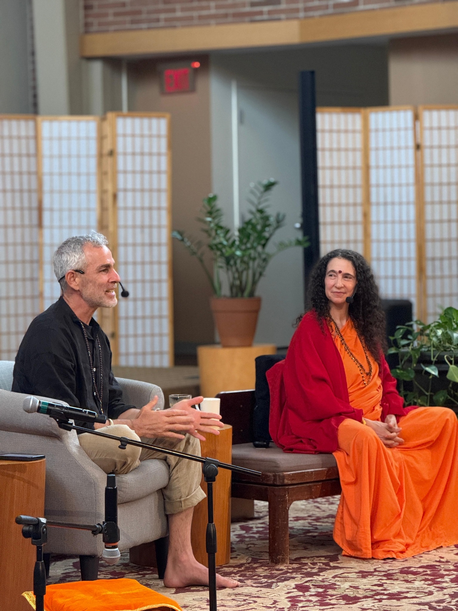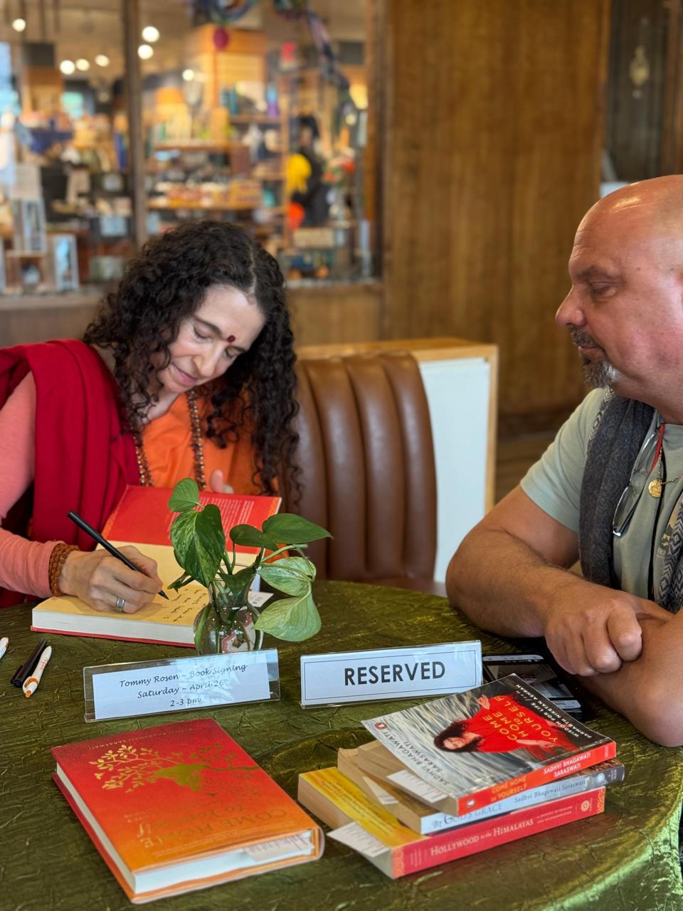 It was a joy for Sadhviji to spend the weekend co-leading a retreat at Kripalu Center for Yoga & Health with Tommy Rosen on “Come Home to Yourself: Yoga and the Path of Self Discovery.” From Friday evening through Sunday the retreat deep dove into yoga, meditation, satsang, pranayama, group exercises and so much more. It was a weekend of exploration, upliftment, inspiration, healing and transformation — and a lot of in-joyment (rather than en-joyment which is so fleeting — in-joyment is the experience of truly living IN joy!). Sadhviji even got in a beautiful walk to Monk’s pond and signing/sharing of Come Home to Yourself.