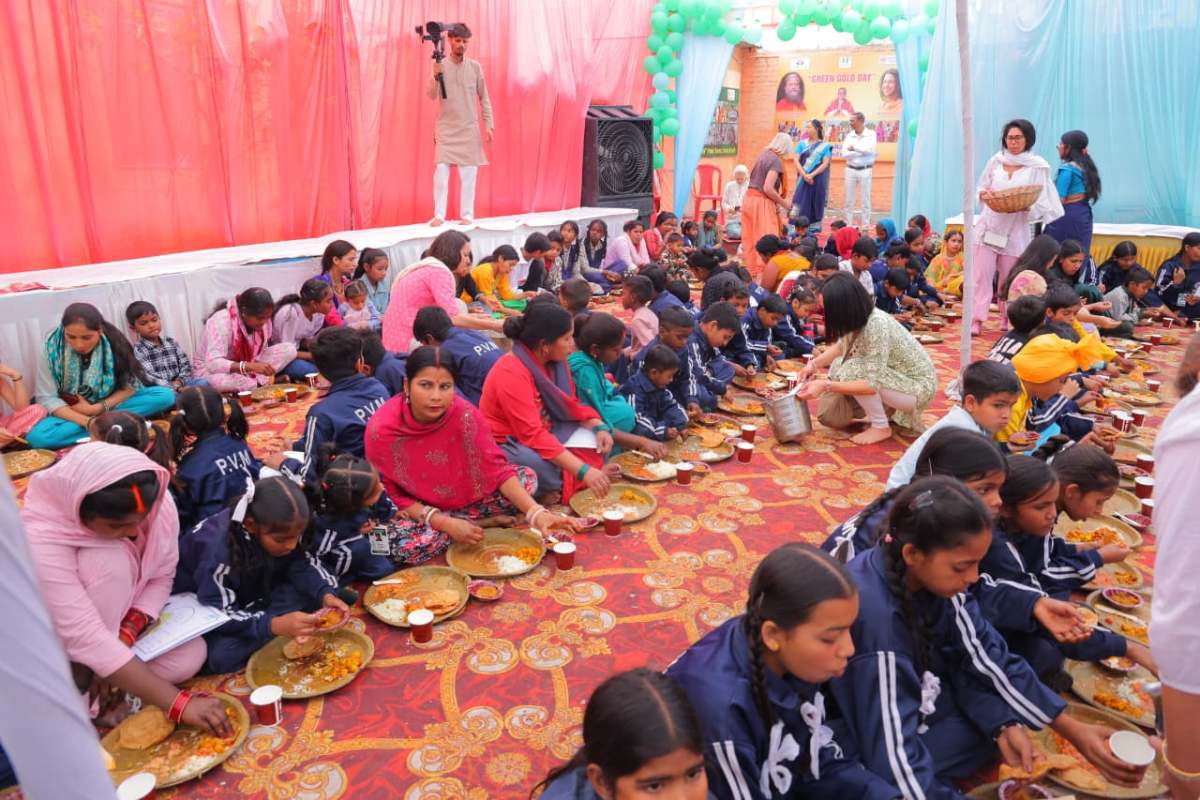 Under the divine presence of Pujya Swami Chidanand Saraswatiji, Pujya Sadhvi Bhagawati Saraswati Ji, Mahant Giri Ji, and philanthropist Shri Dinesh Shahra Ji, “Green Gold Day” was observed with a plantation drive alongside young children.