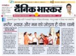स्वामी जी ने कहा कि योग से हम सब जुड़ते हंै, योग हम सभी को जोड़ता है। सामूहिक सोच ही इस देश का कल्याण करेगी। स्वार्थ से उपर उठकर परमार्थ की यात्रा ही है योग यात्रा। विश्व योग यात्रा के लिये भारत के ओजस्वी प्रधानमंत्री श्री नरेन्द्र मोदी जी की भूरि-भूरि प्रशंसा की।